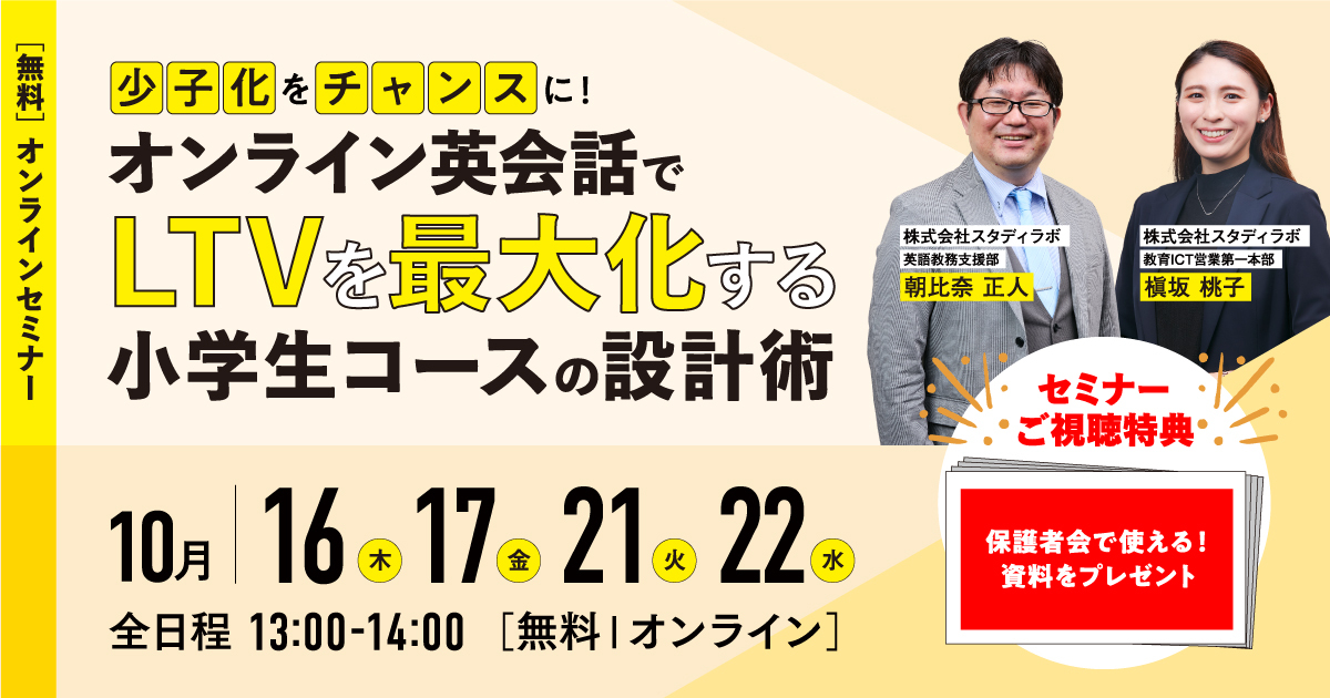 【10月開催】少子化をチャンスに!オンライン英会話でLTVを最大化する小学生コースの設計術